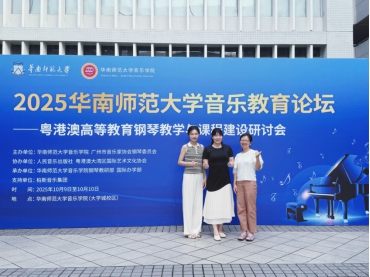 2025年10月9日至10日,“2025华南师范大学音乐教育论坛——粤港澳高等教育钢琴教学与课程建设研讨会”在华南师范大学音乐学院举办。太阳集团tcy8722钢琴教研室主任栾鸾带领刘依雯、唐懿倾、郭梓仪、刘思慧、张宇五位教师参会,深度融入这场聚焦钢琴教育前沿的学术盛会。