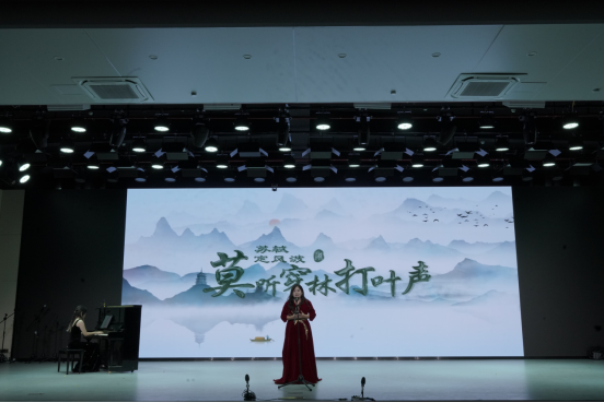 音乐会以一首《盛世国乐》隆重开场,陈欣琳等四位同学的古筝重奏大气磅礴,再加上李炜晨同学的中国鼓,尽显恢宏气势;胡乔鸣同学独唱的《定风波-莫听穿林打叶声》,歌声层层递进,情绪跌宕起伏,将歌曲意境展现得淋漓尽致;刘佳扬、钟晴、何瑜锐、同学的女生小组唱《玛依拉随想曲》,旋律活泼欢快,歌声婉转动听;冯琪琪、李翠婷等同学带来的器乐重奏《think of me》,为这首经典的音乐剧曲目注入了新的灵魂,打动了在场每一位观众的心;崔琳欣和林汝桥同学则用一首钢琴四手联弹《莫扎特k381》,把观众带回了18世纪,重温了莫扎特早期的活泼、明快的作品风格;紧接着,灯光渐暗,小提声起,一个少女的身影伴着忧郁的旋律翩翩起舞,由林雪儿、周烨等同学带来的器乐舞蹈《Rhythm of Tomorrow》,向观众呈现了一幅绝美的舞台画卷;当观众还沉浸在略带忧伤的情绪中时,一声筝响划破寂静,由陈雅婷等同学演绎的器乐重奏《定风波》带着豁达大气的旋律再次将场内氛围点燃;而冼珈羽、俞苑廷等同学带来的歌剧选段《爱情是一只顽皮鸟》则将热烈气氛推至高潮,歌声与肢体的完美呈现,为观众带来了一场视听盛宴;杨美晴、冼韵等同学表演的音乐剧《风声》,舞台表演张力十足,仿佛真的将观众带到了紧张刺激的谍战现场;而曾卓源、何琨等同学演绎的流行音乐剧《红玫瑰》,将器乐、舞蹈和人声层层铺开又完美融合,中间部分展现的海豚音更是让观众十分震撼,掌声不断;而周洋和董夏华同学带来的歌剧选段《一双鞋子针儿密》,则是把观众带回了那个艰难的抗战年代,歌声唱出了夫妻间的依依不舍,更唱出了人民群众坚定不移的抗战决心;音乐剧《我相信,于是我坚持》,由陈美静、赵柯凡等同学演出,这首出自经典音乐剧《蝶》中的选段,被她们演绎出了属于自己的味道;伴随着动人的钢琴弹唱,由谢榕、周烨、吴晓蕾等同学带来的音乐剧《lala land》闪亮登场,欢快的舞蹈,动人的歌声,再配上同学们精心准备的互动环节,让全场观众都跟着一起嗨起来;毛嘉欣 彭静 罗静茹等同学表演的歌剧选段《孩子啊》和《绣红旗》,情感充沛,歌声动人;最后,全体演出人员在赖景灝、蓝淑茹、梁智等同学的带领下,一起唱出了对祖国母亲的赞歌《我爱你中国》,整场音乐会也在这充满着温馨和爱的氛围中落下帷幕。